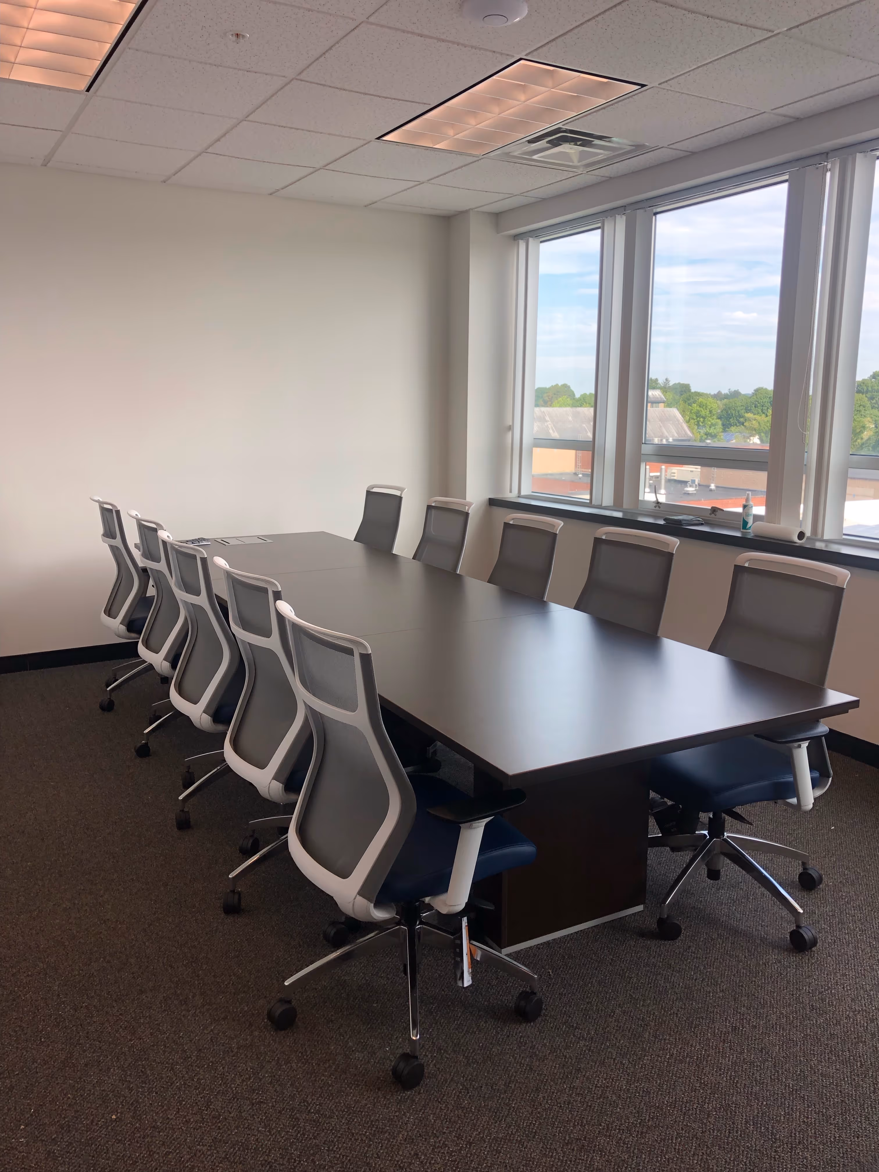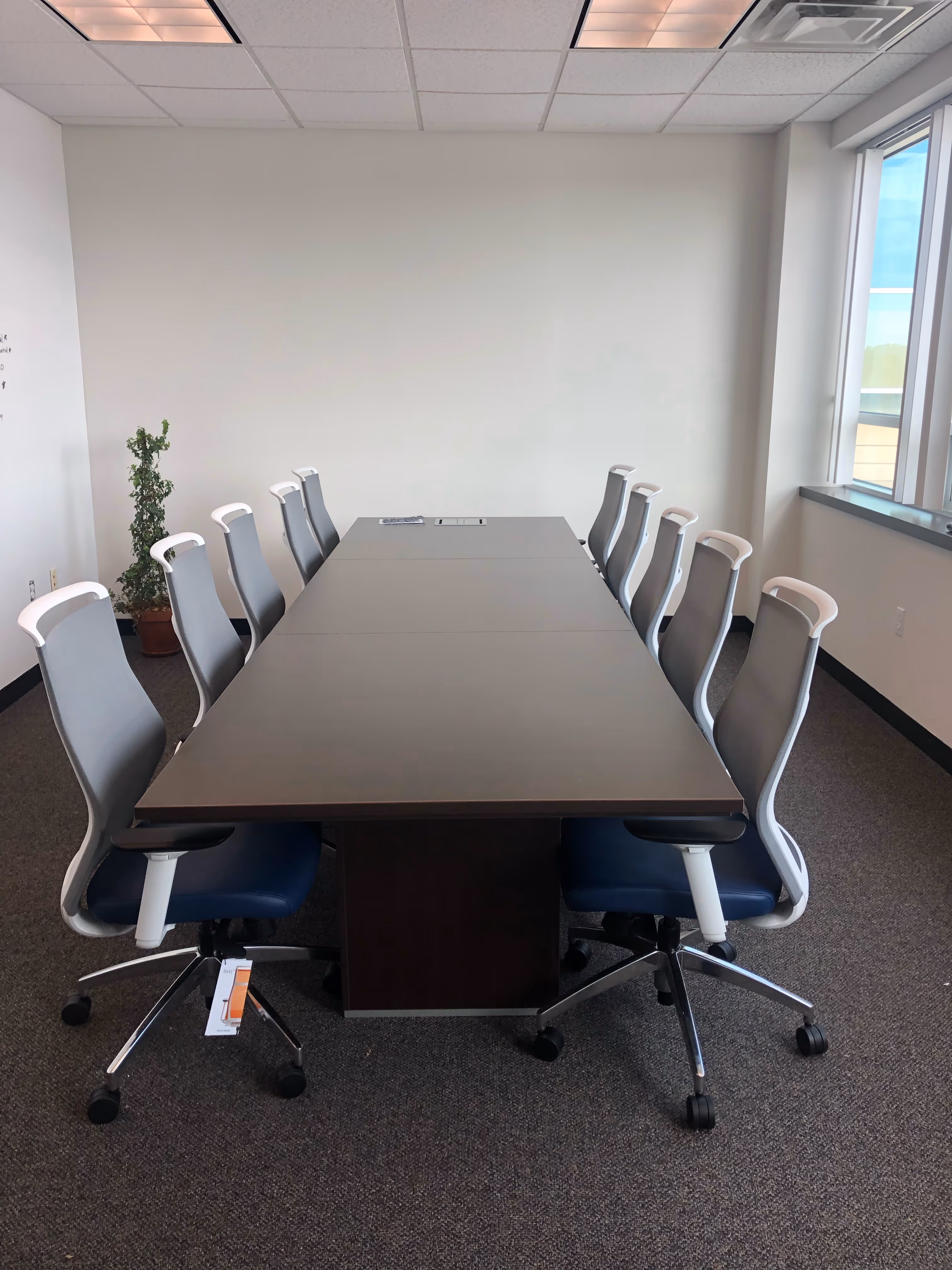 - Conference facilities: Executive-style espresso veneer table, black leather chairs, and six Quartet glass whiteboards for high-impact meetings.